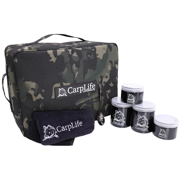 Supplied with a handy CarpLife Microfibre Hand Towel, Black Etched Tea Spoon and 4 food grade CarpLife pots for tea, coffee, sugar and seasoning.