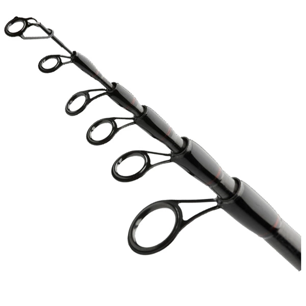The DAM SHADOW Tele rods convince not only with their very thin, light and fast 24TC carbon blank and the use of high-quality components, but also with their modern and timeless design. The Shadow Tele rods are equipped with light but resistant wrapped guides, which means that the action is much faster than with conventional telescopic rod rings. The rods are very good and balanced in the hand and the interaction of the camo-EVA fore grip with the classic cork handle makes the rods a real eye-catcher. The semi-parabolic action cushions head butts and quick escapes but still offers enough power reserves to land even capital fish safely. Packed length 66cm. Weight 162g.