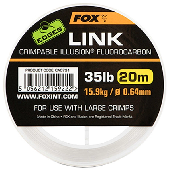 Edges Link hooklengths have been designed to work specifically with Edges Crimps (product code 23994) to create neat and tidy crimped rigs. Ideal for creating stiff links on rigs such as The Hinge Rig, Ronnie and Spinner Rig and various Combi Rigs. The two different diameters and breaking strains are sized to compliment the corresponding size Edges Crimps i.e 25lb Link fits the small crimps and 35lb Link fits the medium. This creates a strong fixing, eliminates inconsistent knots and ensures exact length rigs are easily achievable.