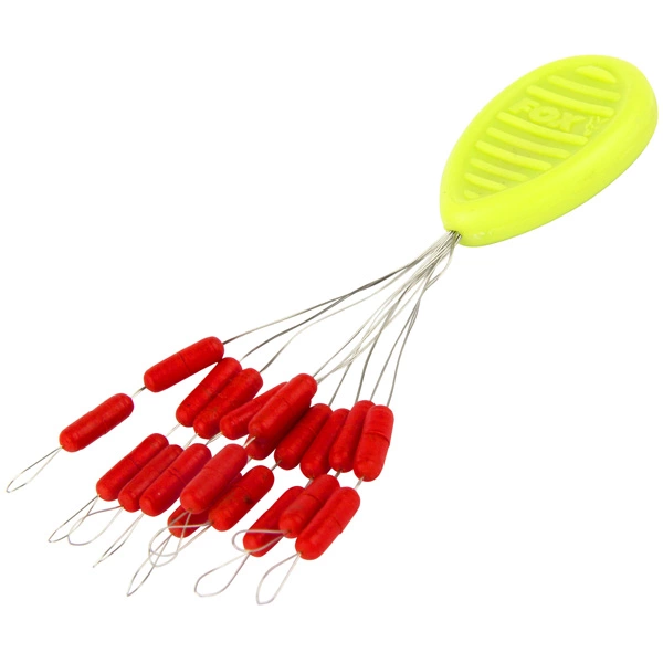 Designed to give superior grip on braided and mono lines as a result of the increased surface contact area. An essential piece of kit for anglers who float fish for predators. Black or Red. Pack of 20.