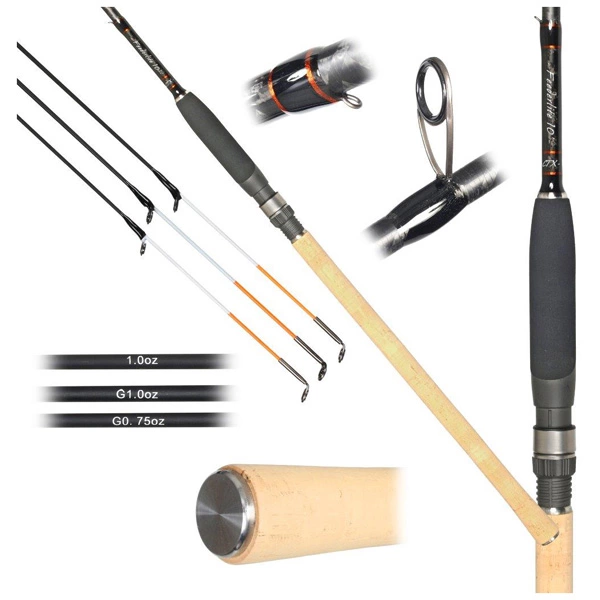 This 10ft version makes a great small river and canal rod as well as lake fishing up to around 40m; the 11ft makes a great all-round tool for rivers and lakes with casts up to 50m or so whilst the 12ft rod is perfect for casts up to around 60m. Supplied with glass tips of 0.75oz, 1oz and a carbon tip of 1oz. However Free Spirit also supply other glass and carbon tips (Please contact the shop for details).