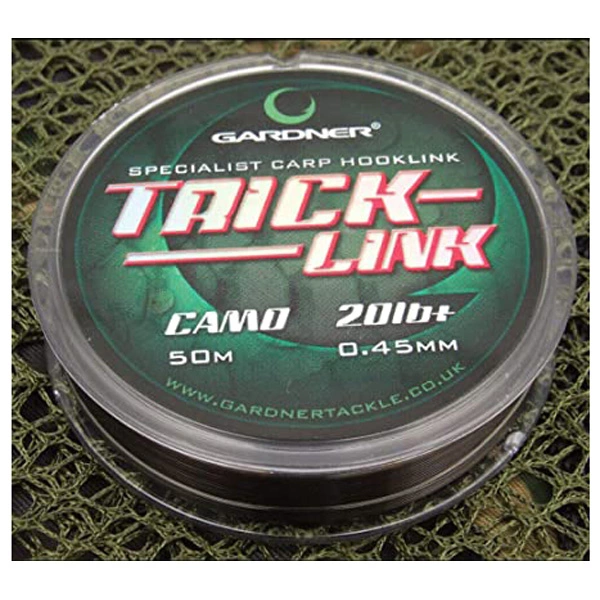 With the introduction of Trick-Link Gardner think they have developed the perfect boom and stiff link material. This superb colour, low memory monofilament hooklink material has been developed to balance rigidity with that little bit of flexibility that allows the rig to settle just right. We all know that the best presentation will give the best chance of a bite. Camo. 50m spool.
