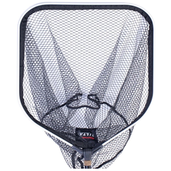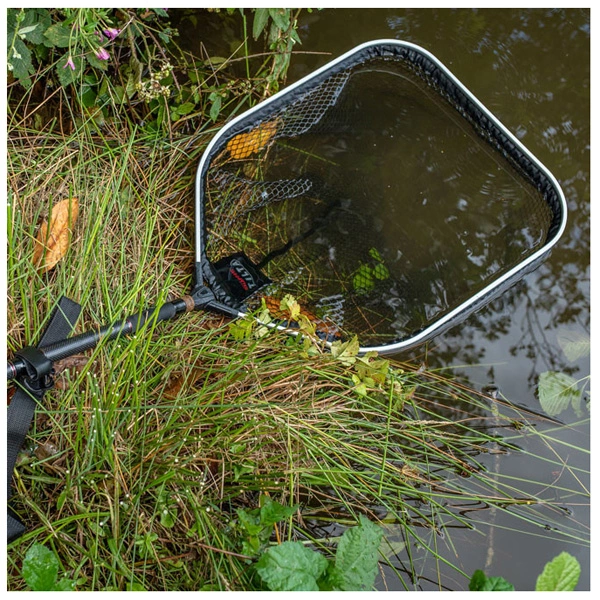 Designed with an adjustable tilting mechanism that enables you to lock the head at multiple angles and a floating perimeter for short term fish retention. This makes the net ideal when fishing from high banks. To lock into position, adjust to the angle required then screw in your landing net handle. These nets feature a fish-friendly, super soft latex mesh. The square shape also helps when landing fish in flowing water.