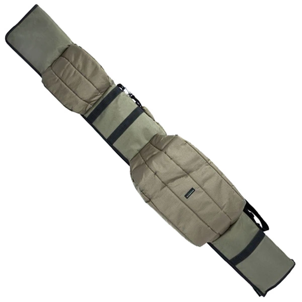 This rod holdall provides loads of protection for made-up rods and reels. There’s a highly padded area for three setups on the inside, plus a large outer pocket for your landing net and handle. The padded shoulder strap is adjustable, and the carry handle makes life easy on the bank. Increased protection offered for rod guides due to the bumped section at the top of the holdall – a great, simple way to transport your gear.