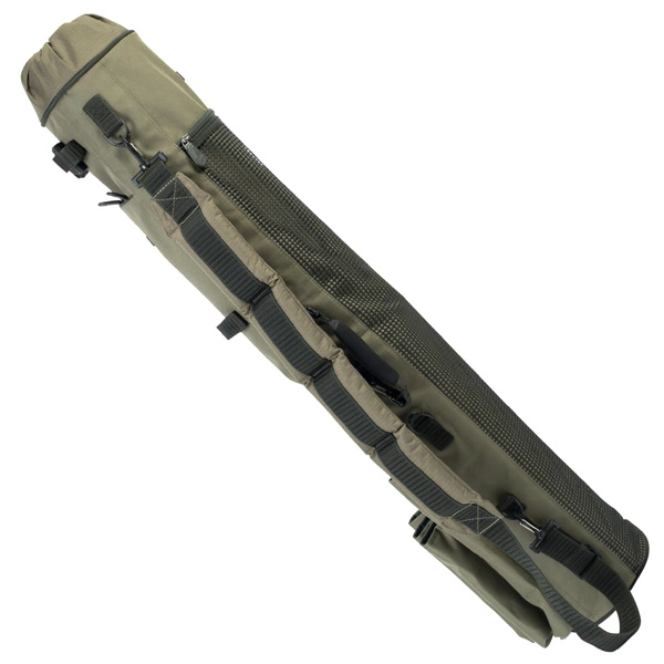 The Transition 3 Rod+ Quiver has been adapted to provide a bespoke area for a landing net handle. Featuring room for three rods, plus a landing net handle, Korum have made the rear compartment larger, to fit all Korum shelters and brollies inside. Features simple outer pockets for bankware and chair accessories. Unique combination of materials that make the luggage lighter, tougher and more waterproof than ever. Padded shoulder strap and carrying handle.