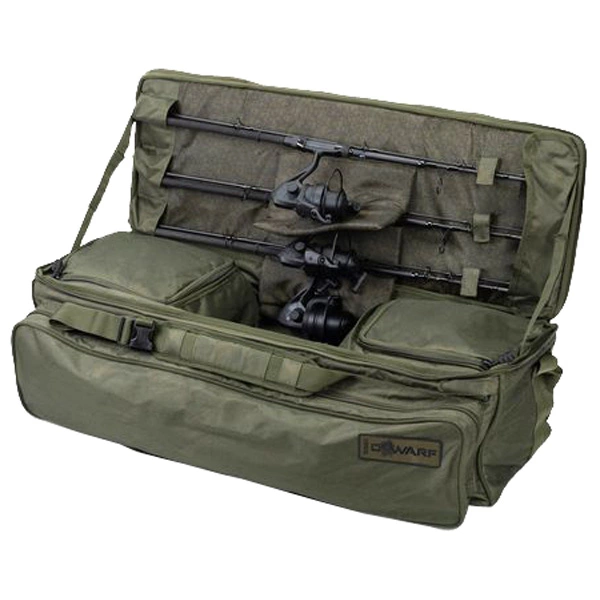 The complete Dwarf luggage solution, taking three made up rods and reels plus accessories, bait and tackle in the proven Transporter rucksack and carryall hybrid design.