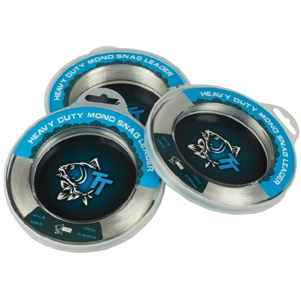 Ultra tough, low memory monofilament Snag Leader, essential for safely landing carp from the most extreme venues where mussels, weed and snags demand extreme strength tackle. 100m spool.