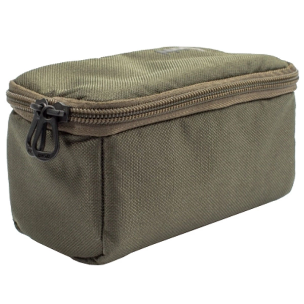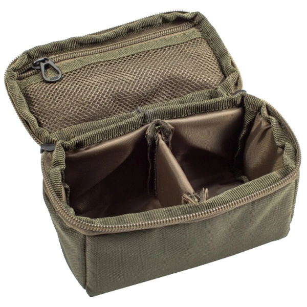Three sided zipped top padded pouch with removable central divider. Holds two small pouches – see product code 21458. Internal under lid mesh zipped pocket.