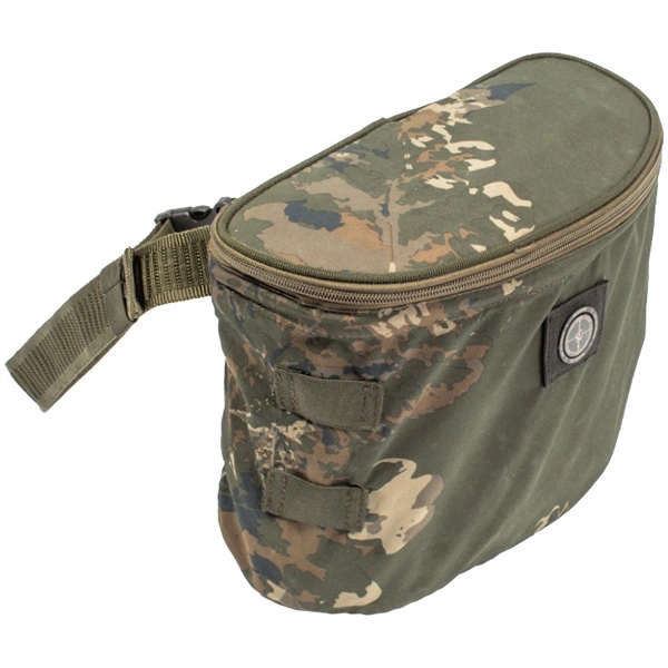 Zipped lightweight peachskin camo waist pouch for carrying boilies, pellets and floaters.