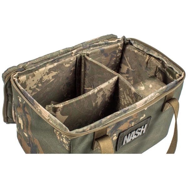 Camo lined, with three elasticated internal mesh pockets plus two elasticated loops to keep lighters and spoons handy with an insulated internal compartment that perfectly fits small bottles of milk, complete with fold down insulated lid to stay fresh for extended periods even in hot weather.