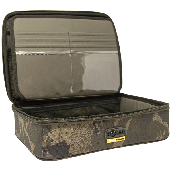 The camo pattern covers the body of the pouch and the hard, moulded lid.