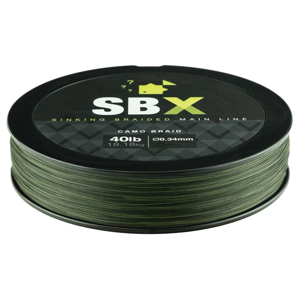 SBX is a high performance and extremely robust sinking braided carp line that has been developed and tested to offer awesome strength for use on the most tackle testing venues. Manufactured to the highest and most exacting standards, using a round profile, tightly woven, fast sinking blend of fibres. The braid has a lovely smooth feel and user-friendly characteristics such as easy casting and fewer wind knots. SBX achieves fantastic camouflage through the application of black colour sectioning overlaid onto the green braided base.