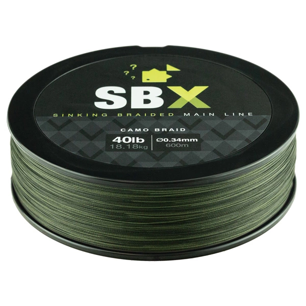 SBX is a high performance and extremely robust sinking braided carp line that has been developed and tested to offer awesome strength for use on the most tackle testing venues. Manufactured to the highest and most exacting standards, using a round profile, tightly woven, fast sinking blend of fibres. The braid has a lovely smooth feel and user-friendly characteristics such as easy casting and fewer wind knots. SBX achieves fantastic camouflage through the application of black colour sectioning overlaid onto the green braided base.