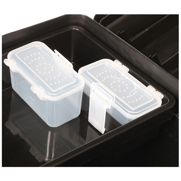 Two plastic accessory boxes are included that are ideal for storing small items you might need to keep close to hand and are just the right size to store packets of hooks or other terminal gear. The ribbed construction gives the box lid strength so you can sit on it. Detachable shoulder strap included.